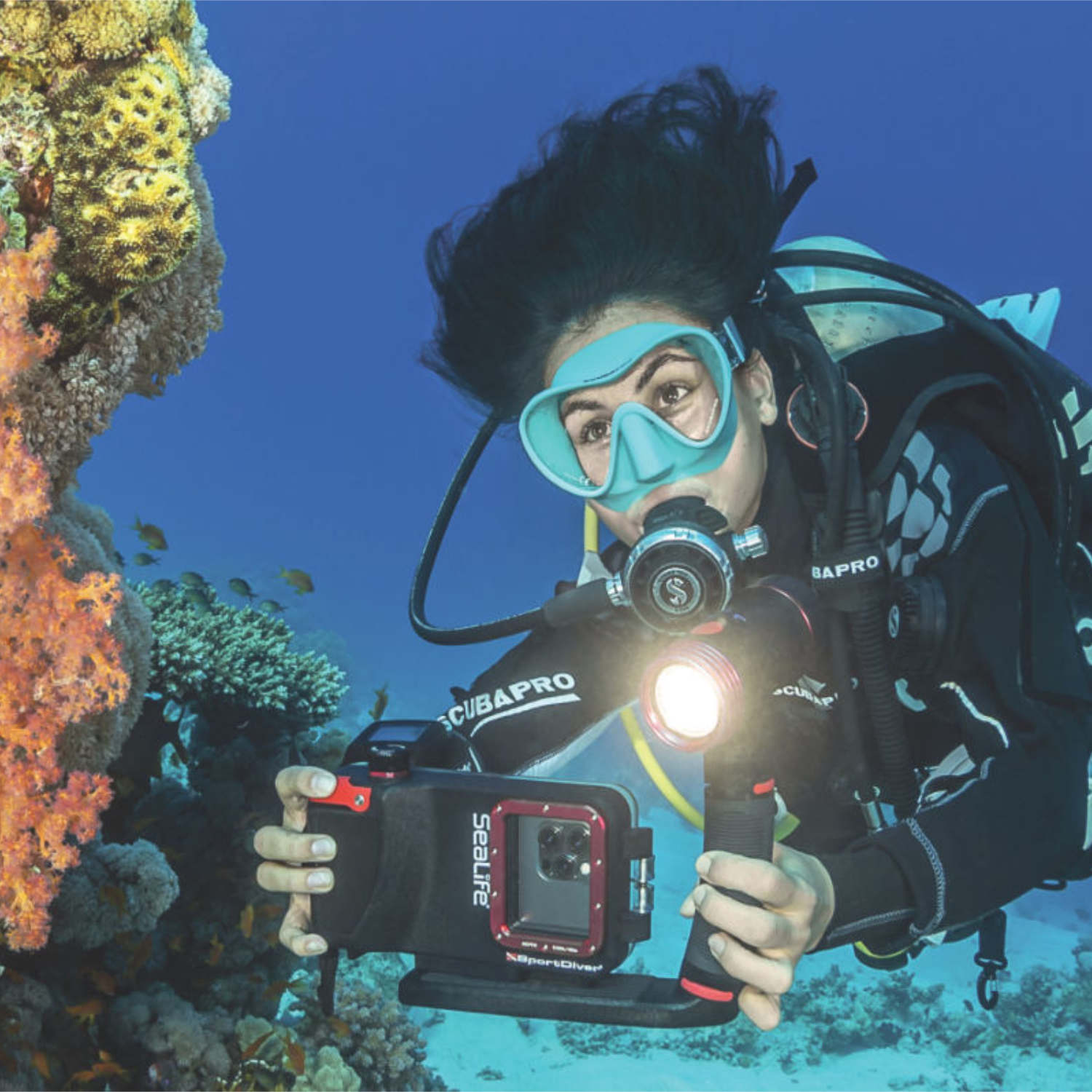 Wir vermieten Dir auch ein professionelles Unterwassergehäuse für Dein Smartphone, damit Du die fasziniernden Eindrücke unter Wasser fotografieren oder als Video festhalten kannst.